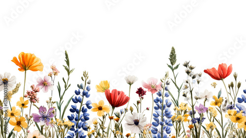 © Maestro, Fototapeta premium Wildflower border featuring colorful blooms against black backdrop, cut out transparent