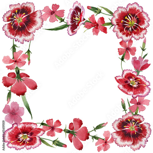 © yanushkov, Obraz premium Wildflower carnation flower frame in a watercolor style isolated.
