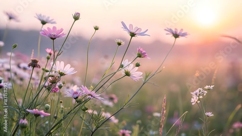 © Asma, Naklejka premium wildflower field nature sunset landscape