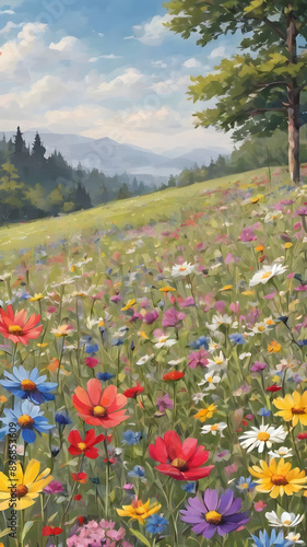 Fototapeta premium Wildflower meadow background with a colorful palette