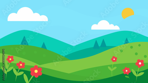© Chamok Chandra, Obraz premium Wildflower Meadow Landscape Vector
