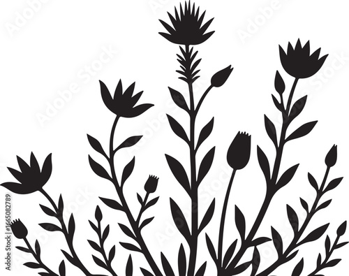 © Md, Naklejka premium Wildflower Meadow Silhouette Border Bundle