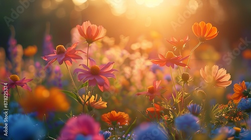 © OlScher, Obraz premium Wildflowers Blooming at Sunset