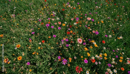 © AImmersive Imagery, Fototapeta premium Wildflowers flourishing in a vibrant green field, showcasing nature's diversity and beauty