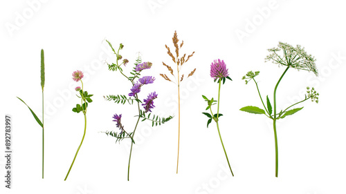 Fototapeta premium Wildflowers isolated over white background.