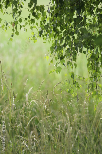 © tanja_riedel, Naklejka premium Wildgräser mit Birkenblätter