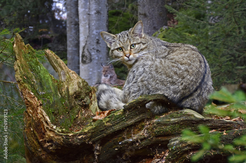 © traveldia, Fototapeta premium Wildkatze und Luchs, Nationalpark Bayerischer Wald, Felis Silves