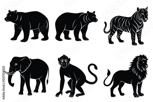 © MarufIslam, Naklejka premium Wildlife animal silhouettes set isolated on white background