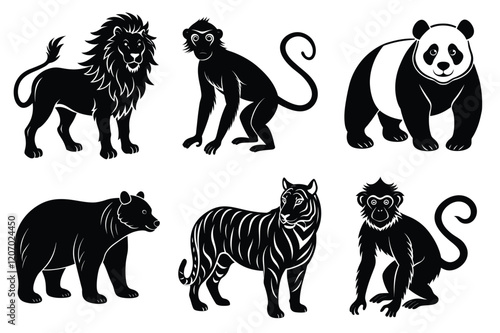 © MarufIslam, Naklejka premium Wildlife animal silhouettes set isolated on white background