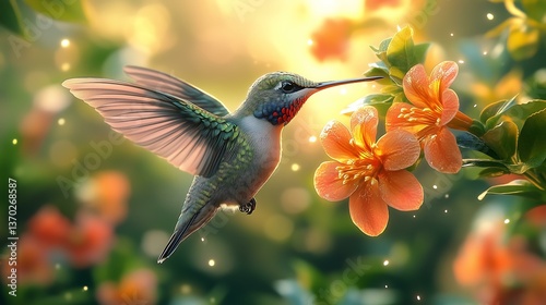 Fototapeta premium Wildlife beauty hummingbird and flowers