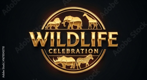 © Nazmeen Shafique, Fototapeta premium Wildlife Celebration Gold Emblem Design Featuring African Animals Perfect for Conservation Projects Logos and Branding