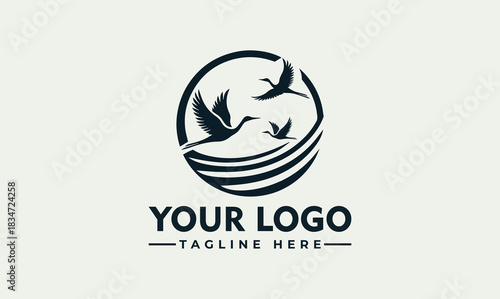 © nuaari, Naklejka premium Wildlife cranes in flight nature emblem design vector. logo. illustration