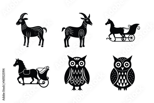 Fototapeta premium Wildlife illustration in decorative folk vector format Silhouette Vector...