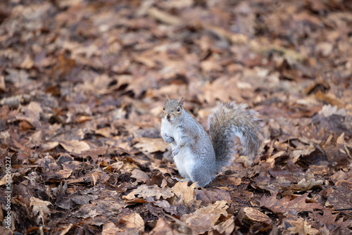 © Kevin, Fototapeta premium Wildlife in UK ducks Robins and Grey Squirrels by lake in winter scene