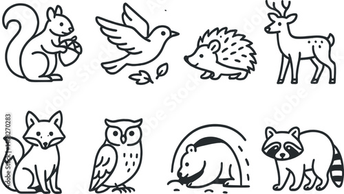© Іван Ніколов, Naklejka premium Wildlife line icons set: outline, linear, animal and nature-inspired symbols