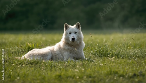 © TheWaterMeloonProjec, Obraz premium Wildlife park scene featuring a white wolf, focusing on habitat preservation
