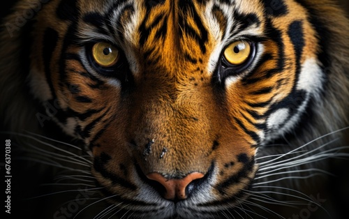 Obraz premium Wildlife tiger striped photography, Headshot tiger on black background.