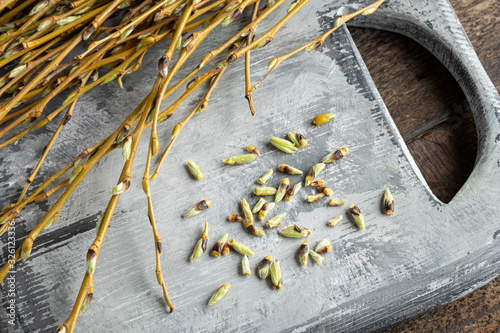 Obraz premium Willow buds - ingredients to prepare a gemmotherapeutic tincture