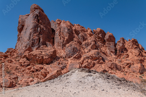 Fototapeta premium Willow Tank Formation (Lower Cretaceous)—Claystone and siltstone, carbonaceous shale, sandstone and sandy conglomerate. Fire Wave Trail, Valley of Fire State Park, Nevada geology. red Aztec Sandstone