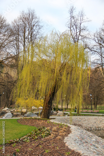 © Ivan Yohan, Fototapeta premium Willow tree in a public park in Vilnius Lithuania