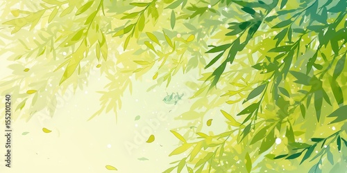 © Rachel Yee Laam Lai, Naklejka premium willow tree leaves in illustration anime style