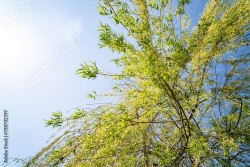 Fototapeta premium Willow tree over water, lake. Sunny day.