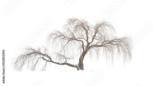 © Wicha1, Obraz premium Willow tree with drooping branches Transparent background, PNG