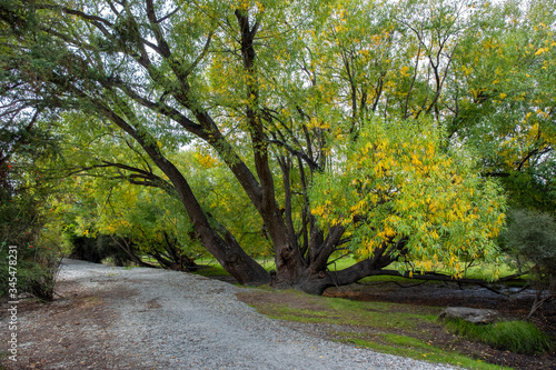 Naklejka premium Willow Trees along the Glendhu Bay Track, Wanaka, South Island, New Zealand