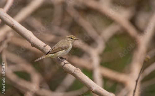 © selim, Fototapeta premium Willow Warbler (Phylloscopus trochilus) is a songbird that usually feeds on lice of tree leaves.