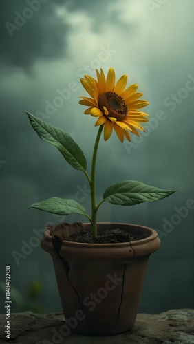 Obraz premium Wilted Flower Under Stormy Sky