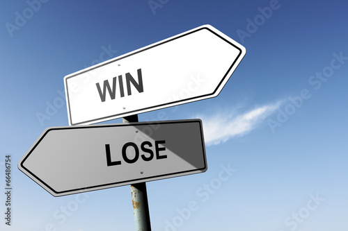 © Zerophoto, Fototapeta premium Win and Lose directions. Opposite traffic sign.