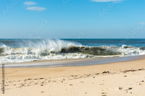Obraz premium Wind and breaking waves on Granja beach south of Porto