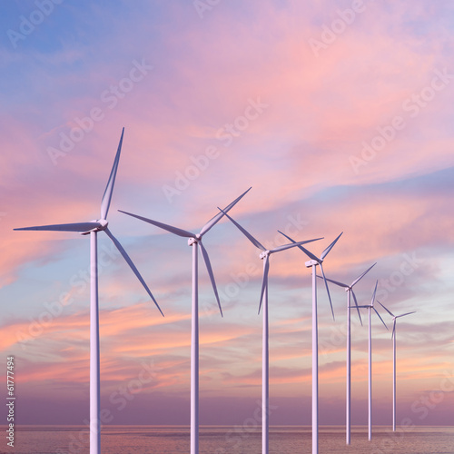 Fototapeta premium Wind generators turbines in the sea on sunset