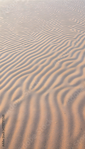 Fototapeta premium Wind-sculpted rippled sand patterns along the ocean shore, natural textured...