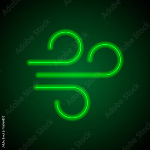 Naklejka premium Wind simple icon. Flat desing. Green neon on black background with green light.ai