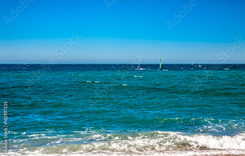 Fototapeta premium Wind surfers on the blue sea