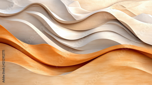 © chayapon, Obraz premium Wind swept dunes texture with angular sand ripples in warm earthy tones, creating mesmerizing abstract landscape with flowing curves and layered waves