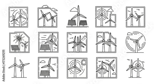 © patur situdio, Naklejka premium Wind Turbine Illustrations Collection.