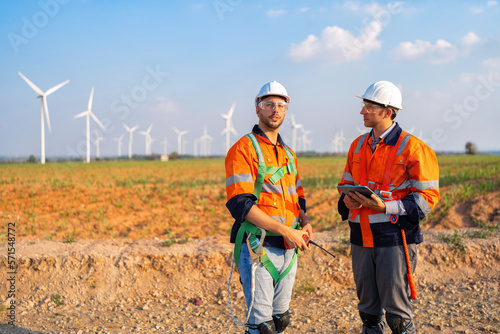 Fototapeta premium Wind turbine service engineer plan for inspection and maintenance renewable electricity generator