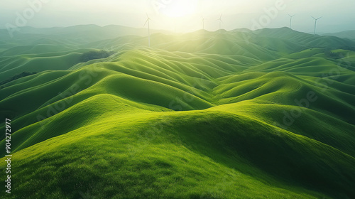 © Kingdola, Obraz premium wind turbines in the field