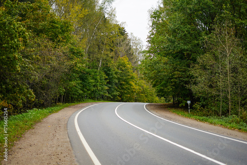 © EVGENII, Fototapeta premium Winding Asphalt Road Through a Lush Green Forest