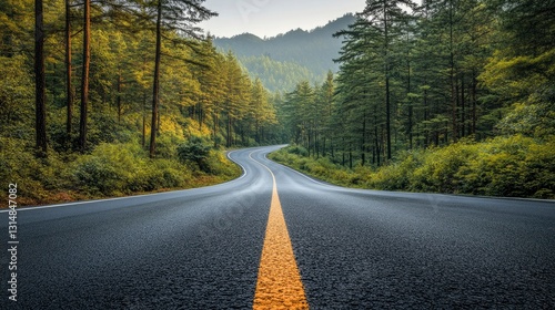 Fototapeta premium Winding Asphalt Road Through a Verdant Forest