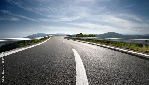 Naklejka premium Winding Asphalt Road White Line Perspective Highway Travel Journey Direction