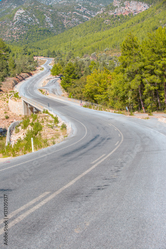 © muratart, Fototapeta premium Winding asphalt road with trees on both sides