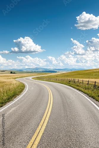 Fototapeta premium Winding Country Road Through Green Fields.