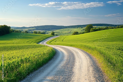 Fototapeta premium Winding Country Road Through Green Fields.