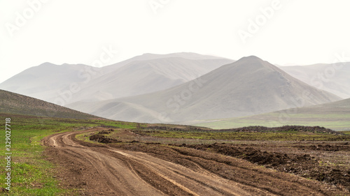 © Vastram, Fototapeta premium Winding dirt road in farm field