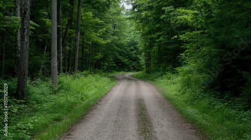 Obraz premium Winding Dirt Road Through Lush Green Forest