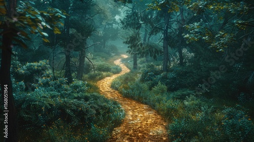 © aito, Fototapeta premium winding forest path disappearing into the trees