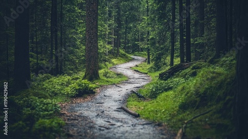 Obraz premium Winding Forest Path Through Lush Green Trees